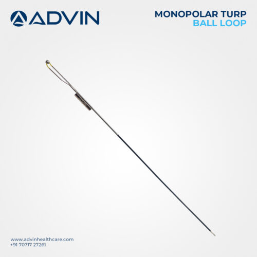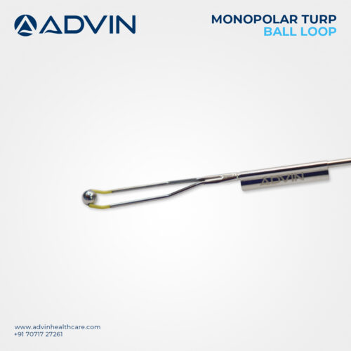 Monopolar TURP Ball Loop is a specialized urological electrode used in TURP (Transurethral Resection of the Prostate) procedures. Its rounded ball-shaped tip is designed for coagulating bleeding vessels and for gentle contouring of the resected tissue without additional cutting. The loop is compatible with monopolar resectoscope systems and provides smooth, controlled energy delivery for safe and effective coagulation. Made from high-quality, surgical-grade materials, it ensures durability, conductivity, and reliability in critical urological operations. Advin Health Care manufactures this product to meet international standards for precision and performance in endourology.