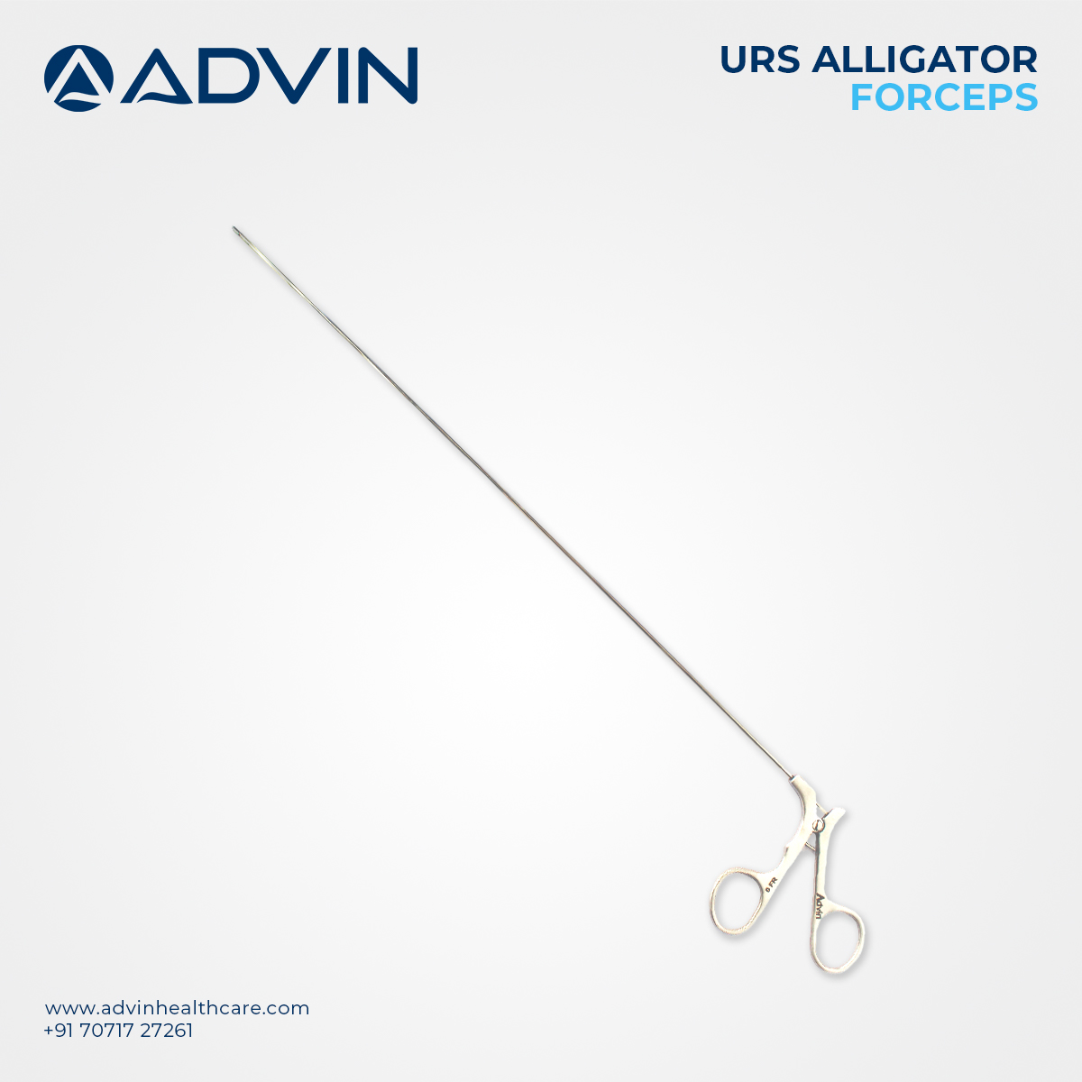 Advin Health Care manufactures URS Alligator Forceps with international quality standards for efficient stone retrieval in endourological procedures. These forceps are widely used for grasping and extracting stone fragments from the ureter or renal pelvis during or after lithotripsy. Designed with an alligator-jaw mechanism, they provide a firm grip and excellent maneuverability through the ureteroscope. URS Alligator Forceps are also known as URS Grasping Forceps, Stent Removing Forceps, Urology Forceps, and Stone Grasping Forceps. Made of medical-grade materials, they ensure durability, corrosion resistance, and smooth operation during procedures.